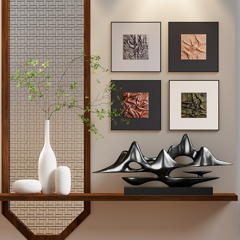 新中式侘寂风玄关柜高档摆件客厅隔断屏风柜壁龛复古小众软装饰品