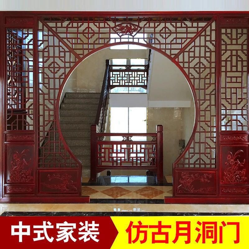 木雕实木花格月洞门新中式玄关客厅隔断屏风仿古月亮门博古架圆拱