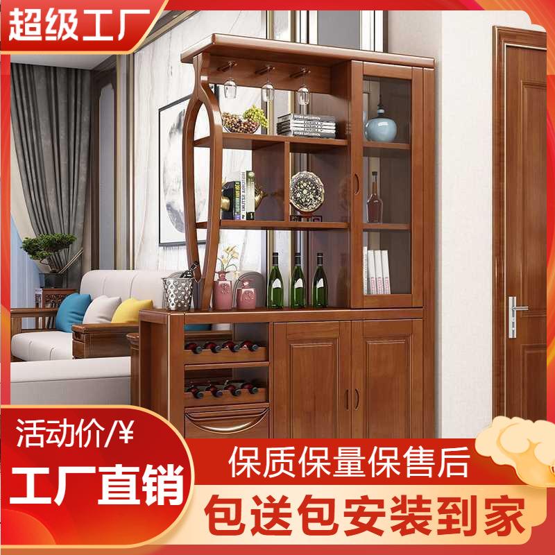 中式实木酒柜门厅柜简约现代一体入户进门客厅隔断屏风柜玄关鞋柜
