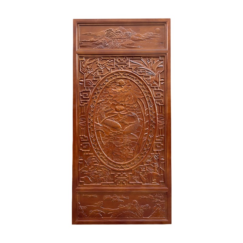东阳实木雕北美樱桃木新中式入户门客厅隔断屏风玄关背景墙包安装