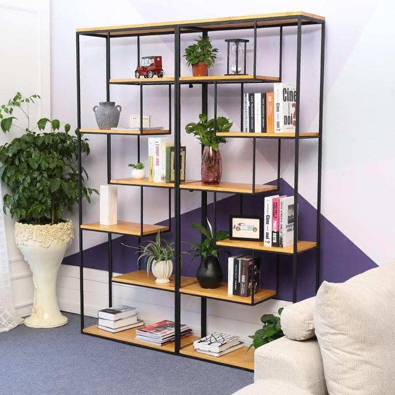 美式铁艺实木客厅隔断屏风书架置物架落地装饰架创意精品架格子架