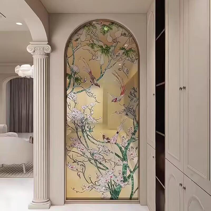 新款珐琅彩客厅隔断屏风复美意欧法式艺术玻璃拱形入户玄关装饰画