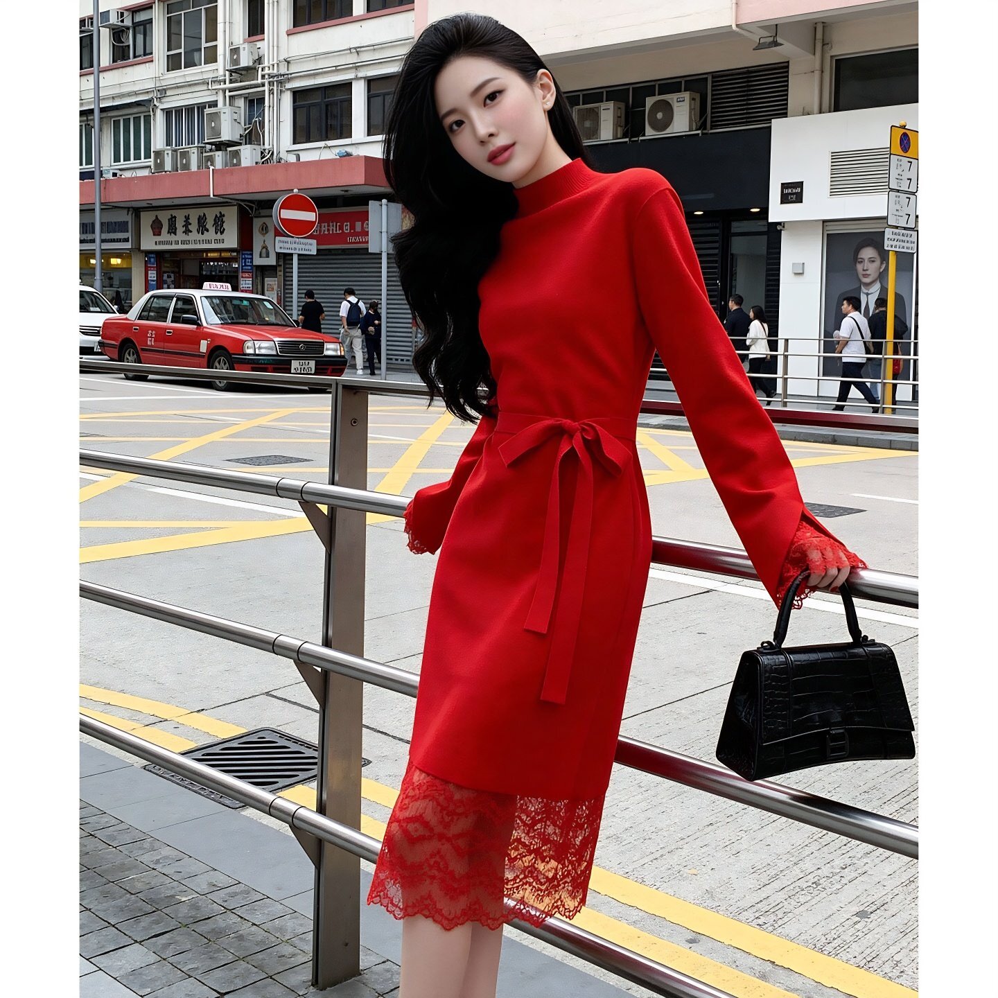 大红针织连衣裙[第1名]