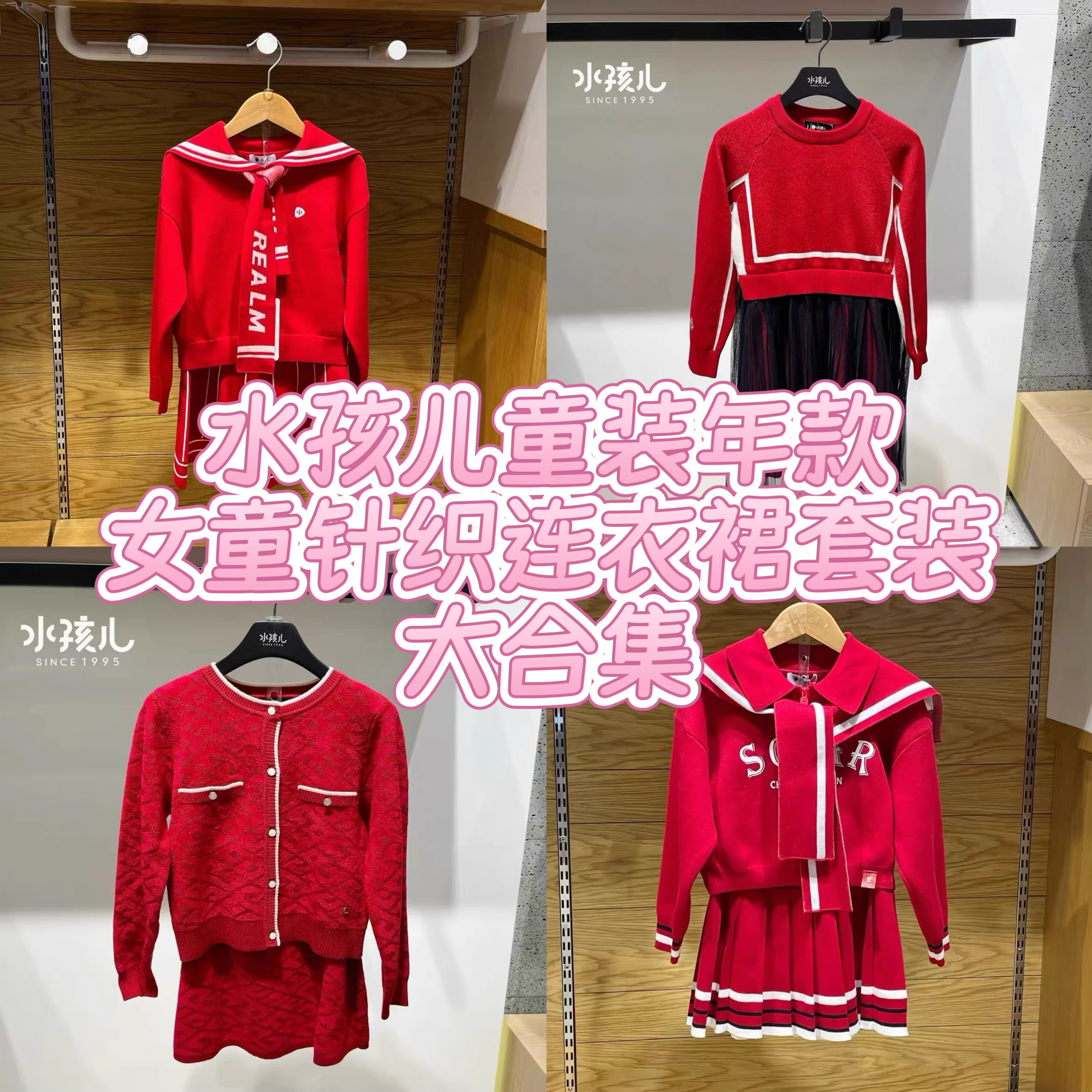 专柜正品水孩儿童装女童裙子大红色冬季新款针织连衣裙套装新年装