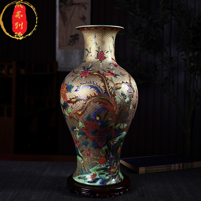 威弗列德手绘仿古描金珐琅彩客厅玄关新中式瓷器景德镇陶瓷瓶摆件