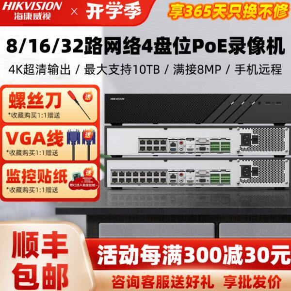海康威视硬盘录像机4/8/16/32路POE监控摄像刻录主机网络高清NVR