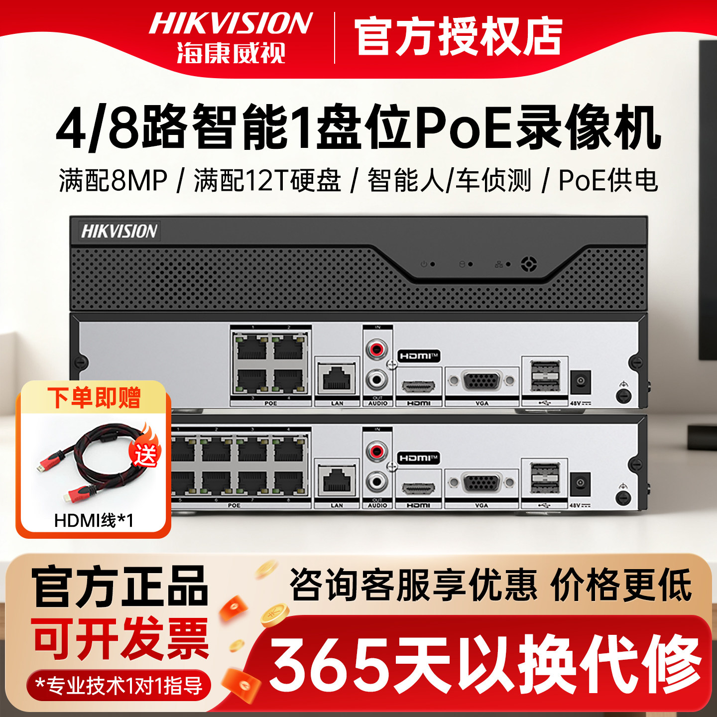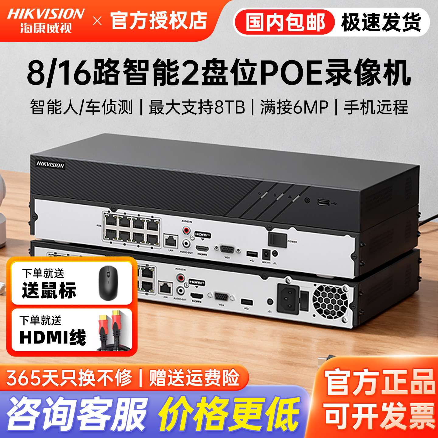 海康威视硬盘录像机4 8 16路poe网络摄像机NVR单/双盘位监控主机