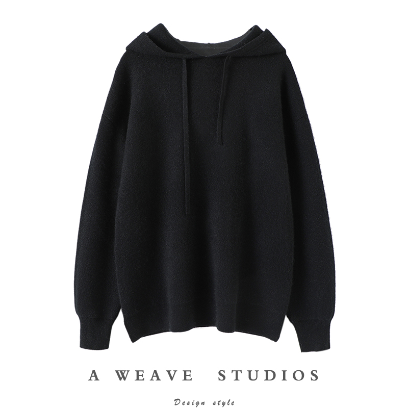 2025秋冬新款连帽宽松百搭羊绒衫女卫衣100%纯山羊绒针织毛衣打底