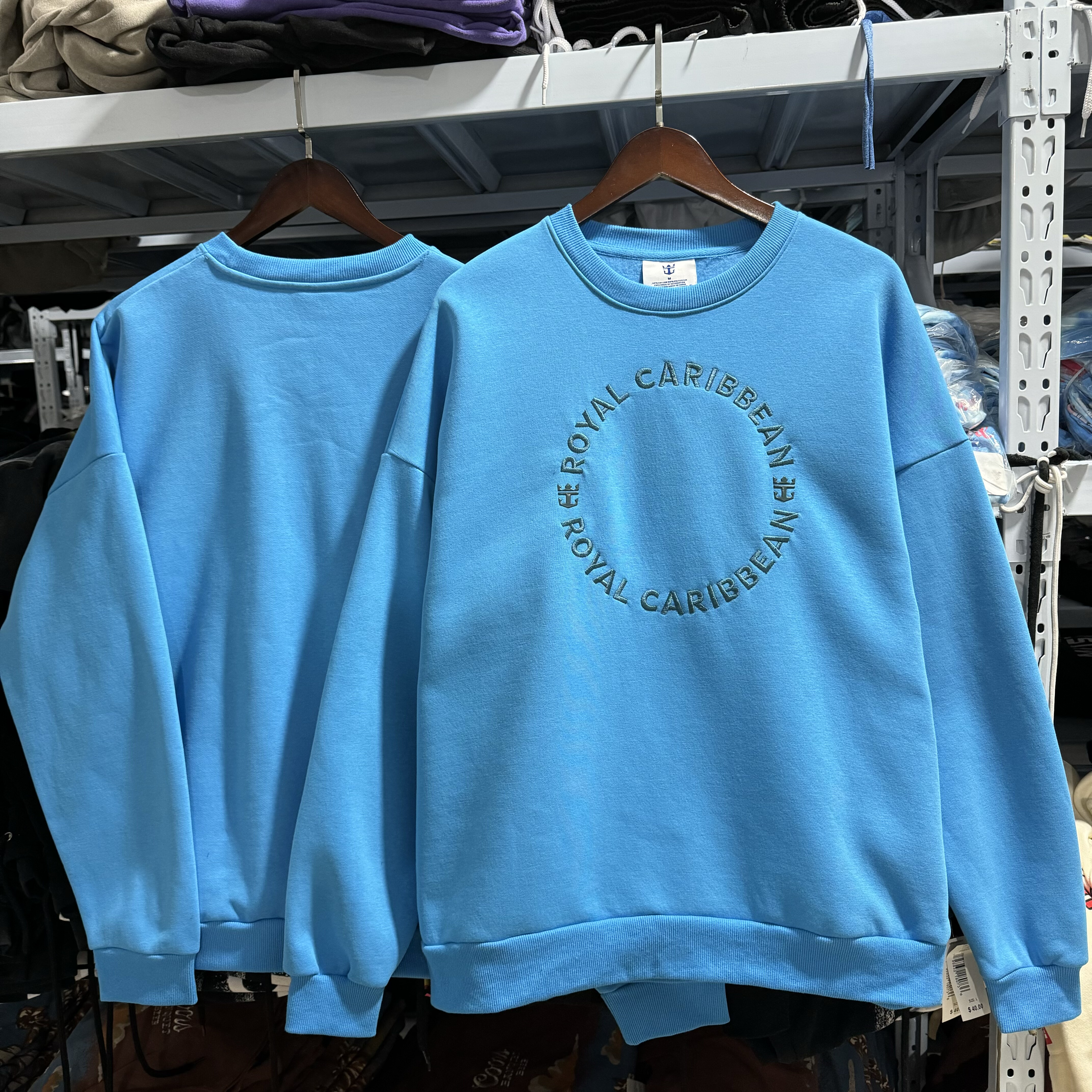 外贸 刺绣 CARIBEA皇家加乐碧周边 慵懒美式圆领秋冬薄绒男女卫衣