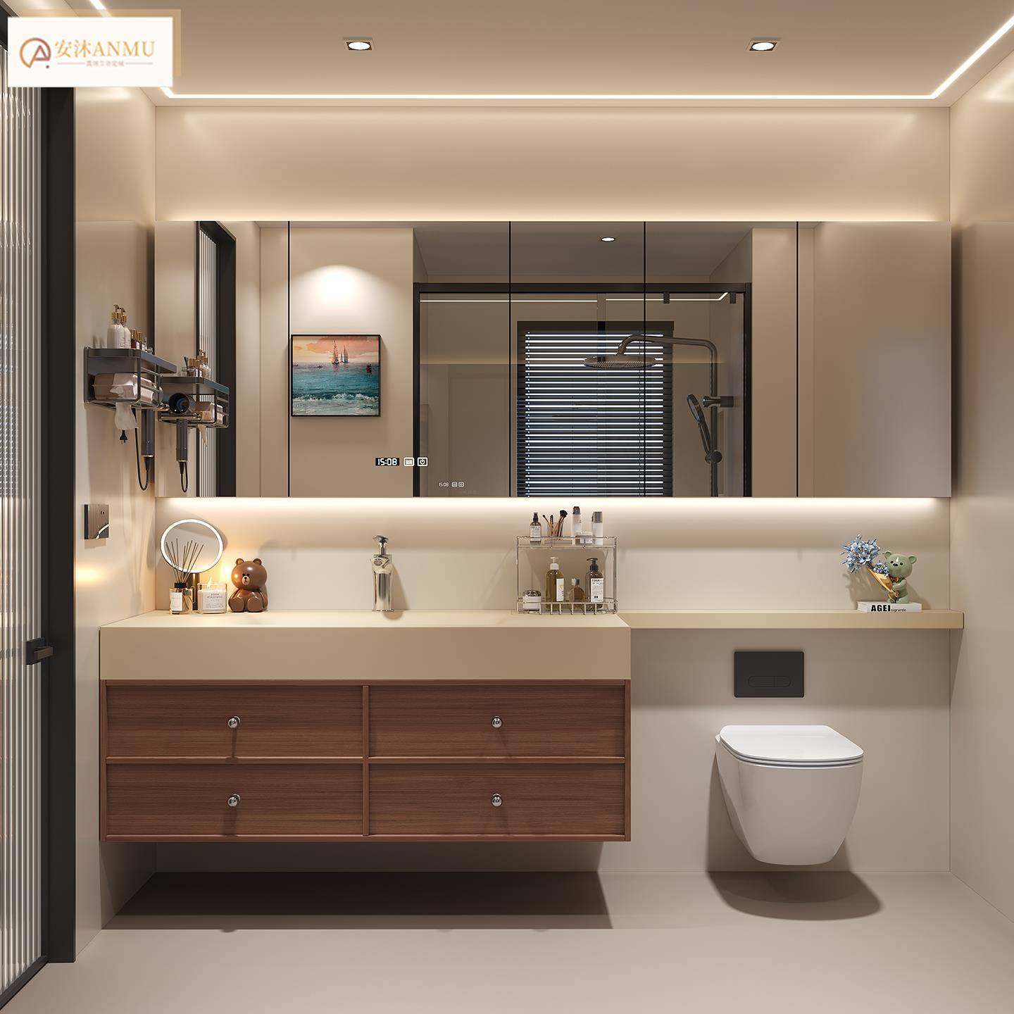 岩石现代简约一体洗脸洗手洗漱台面智能镜柜浴室柜洗手台盆柜组合