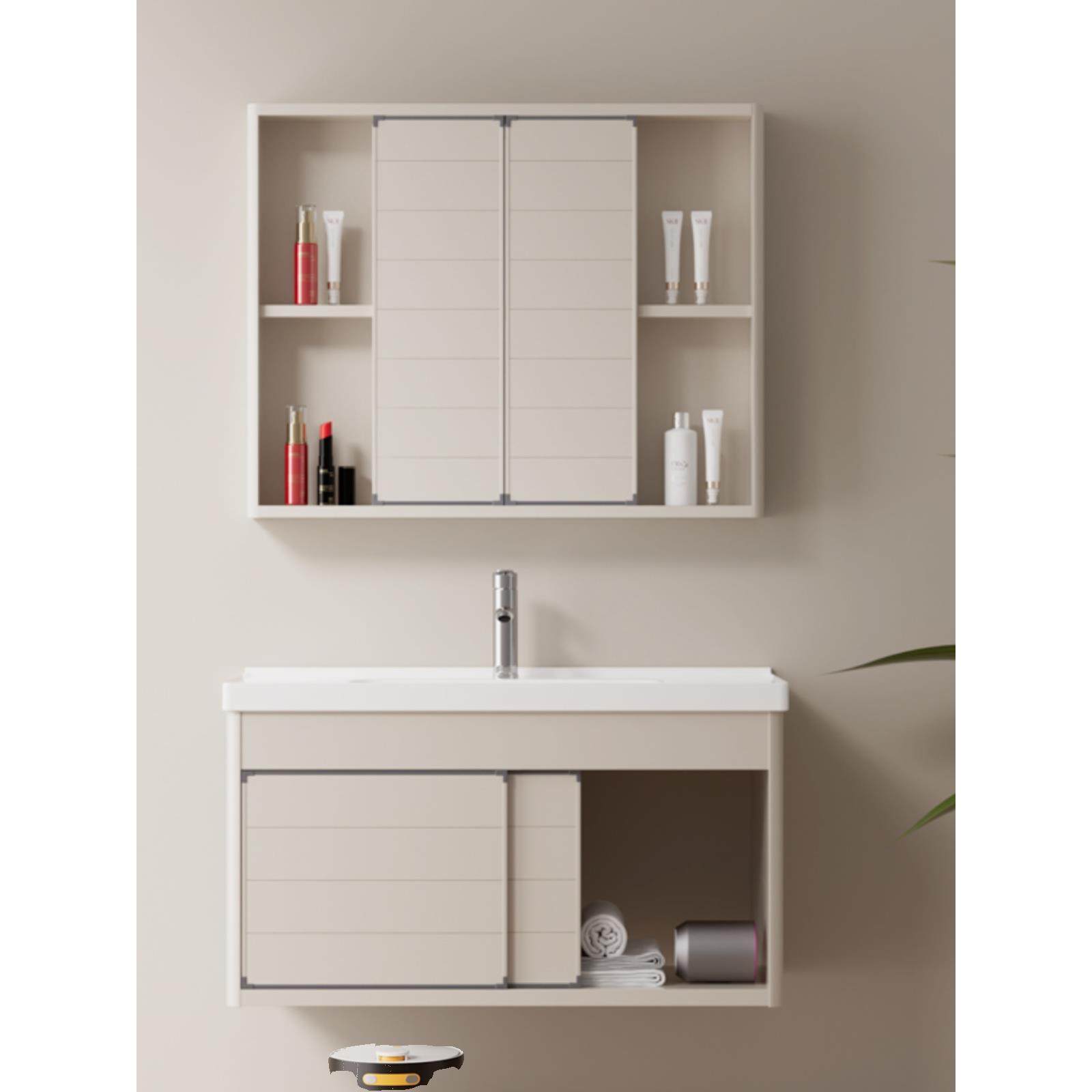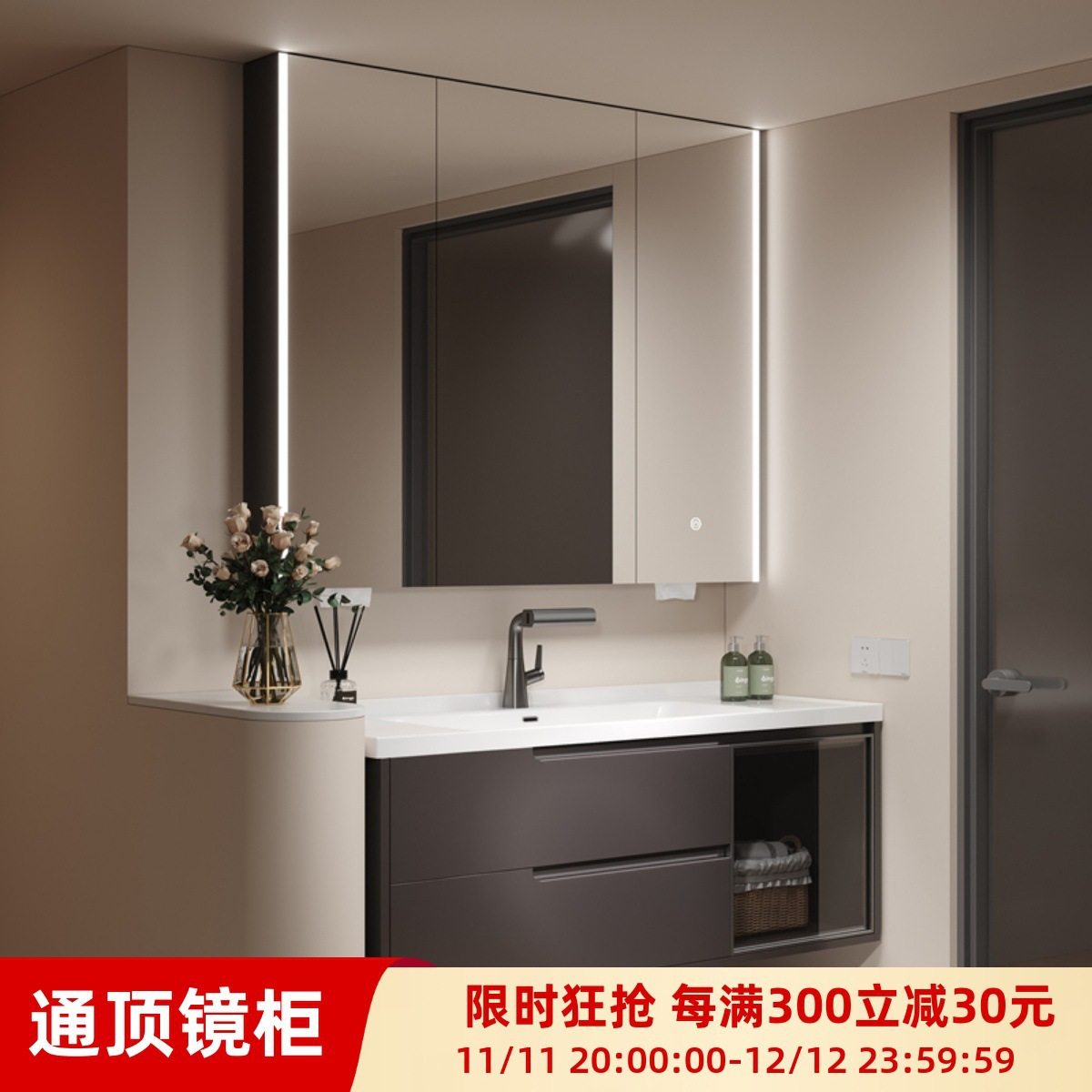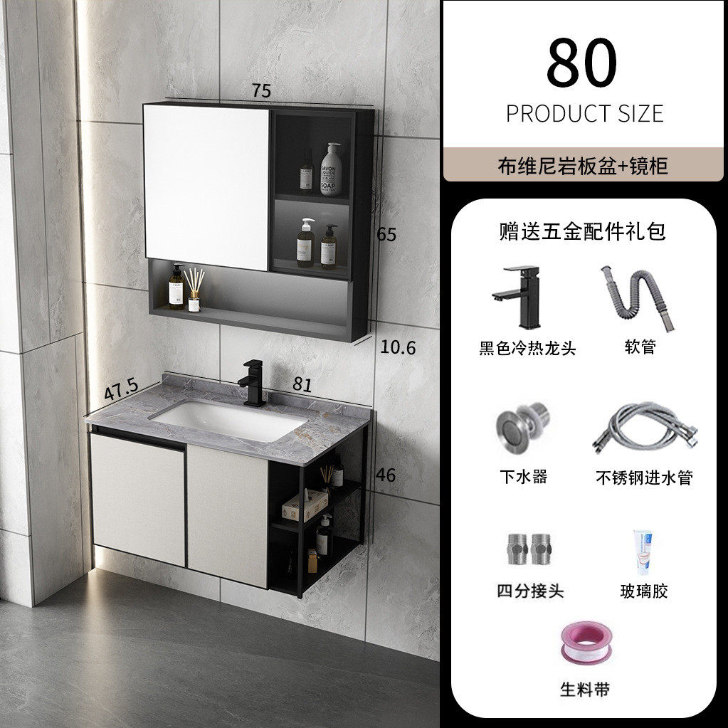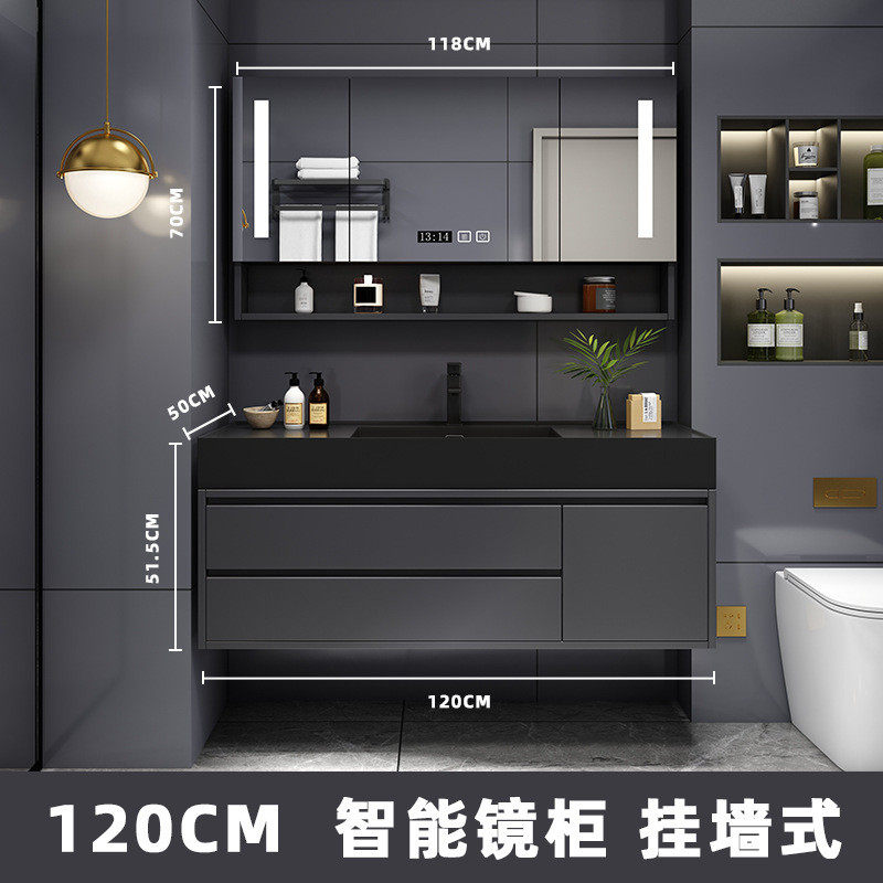 太空铝岩板智能感应灯镜柜浴室柜一体小户型洗漱洗手台组合包安装