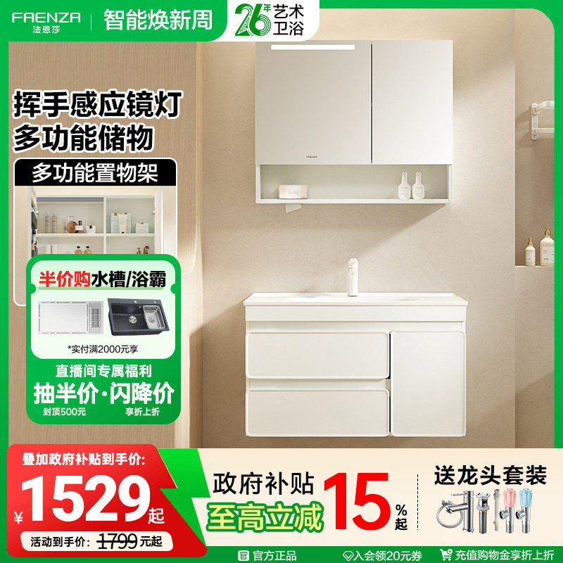 法恩莎卫生间2025新款法式镜柜浴室柜置物架收纳洗漱台陶瓷一体盆