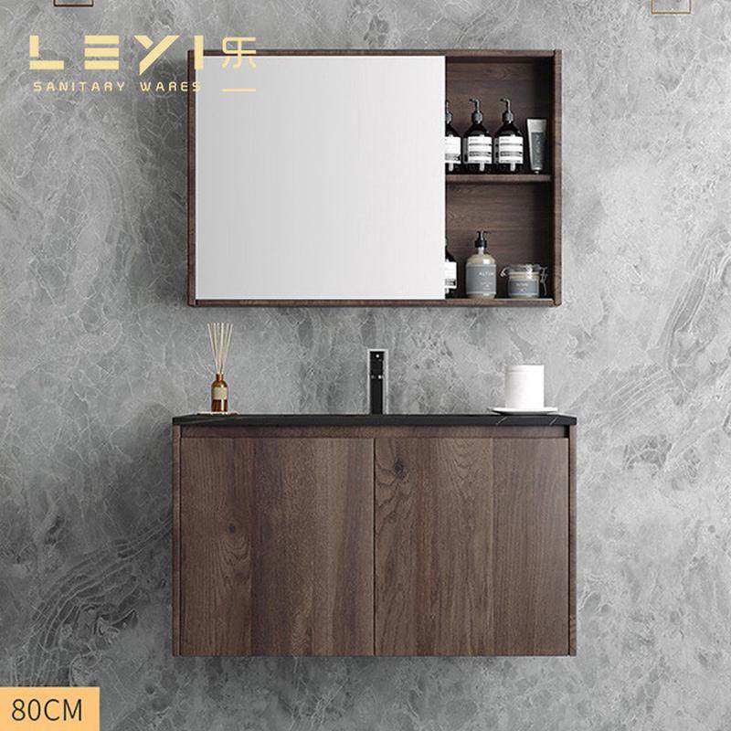乐优客实木落地浴室柜组合陶瓷一体洗脸盆洗手盆洗漱台盆镜柜组合