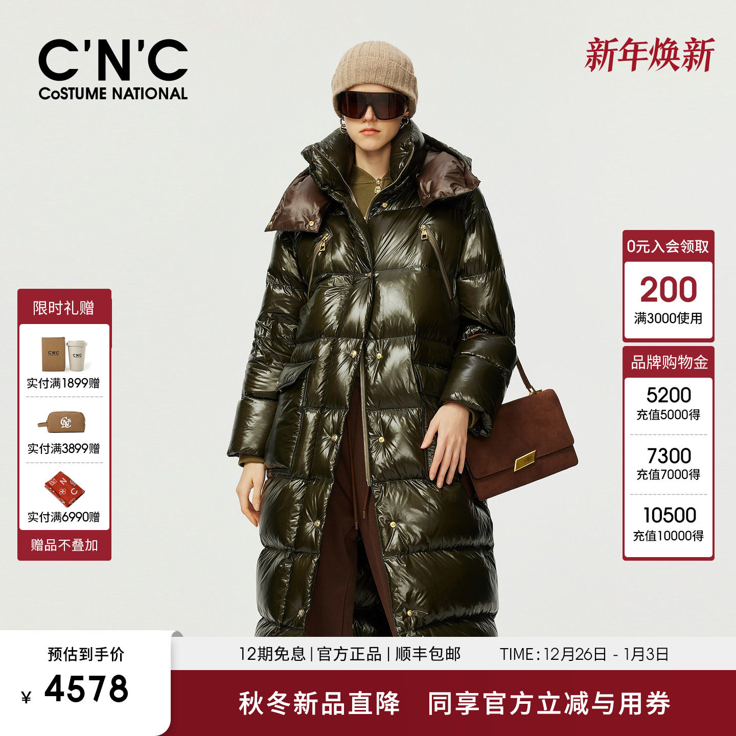 - 大红色羽绒服