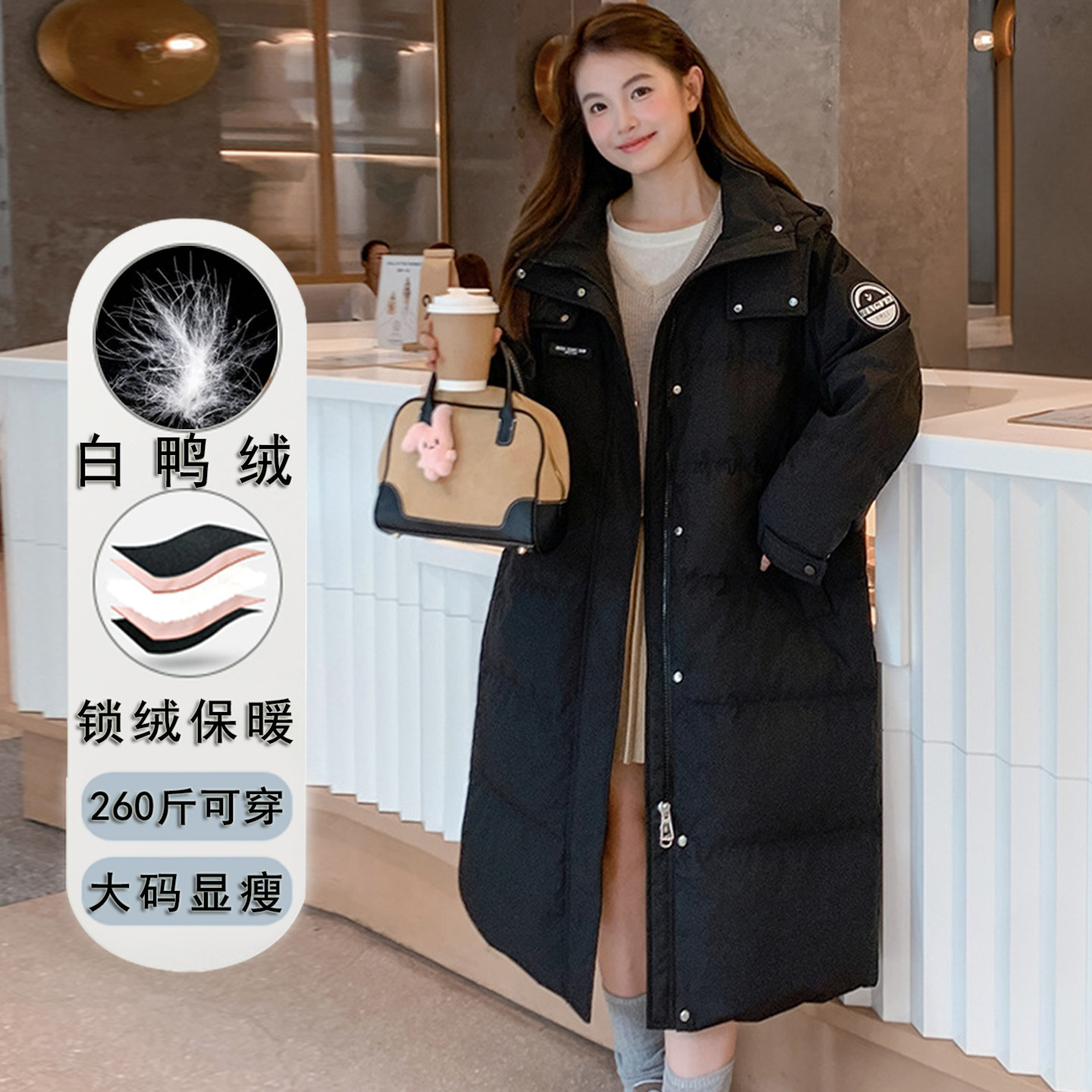 - 羽绒服女中长款大摆