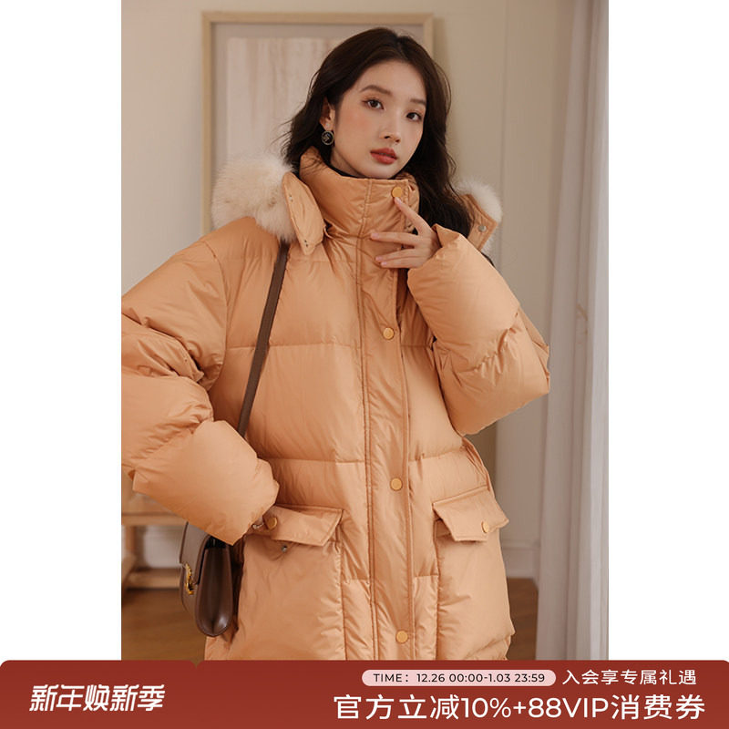 - 貉子毛领女中长款羽绒服