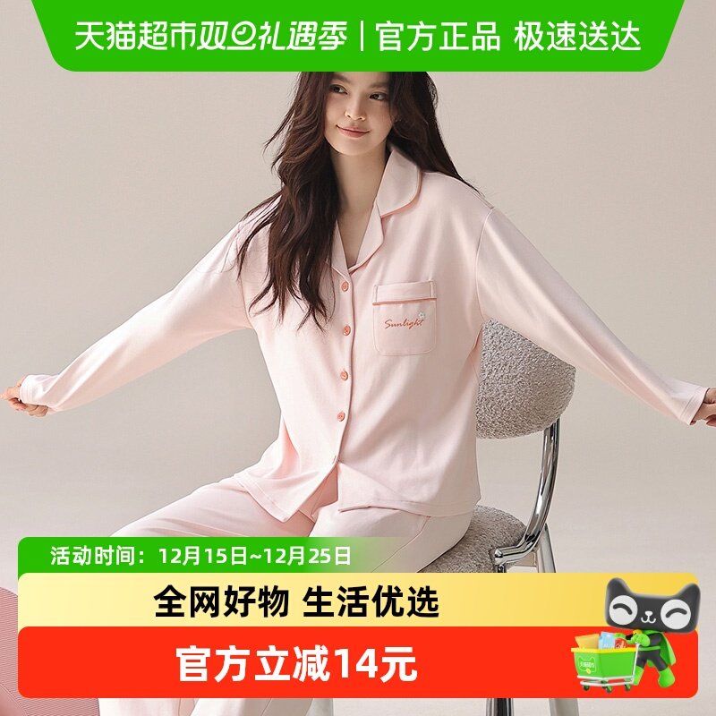顶呱呱薄款睡衣女款2025新款夏季纯棉长袖长裤圆领家居服女士套装