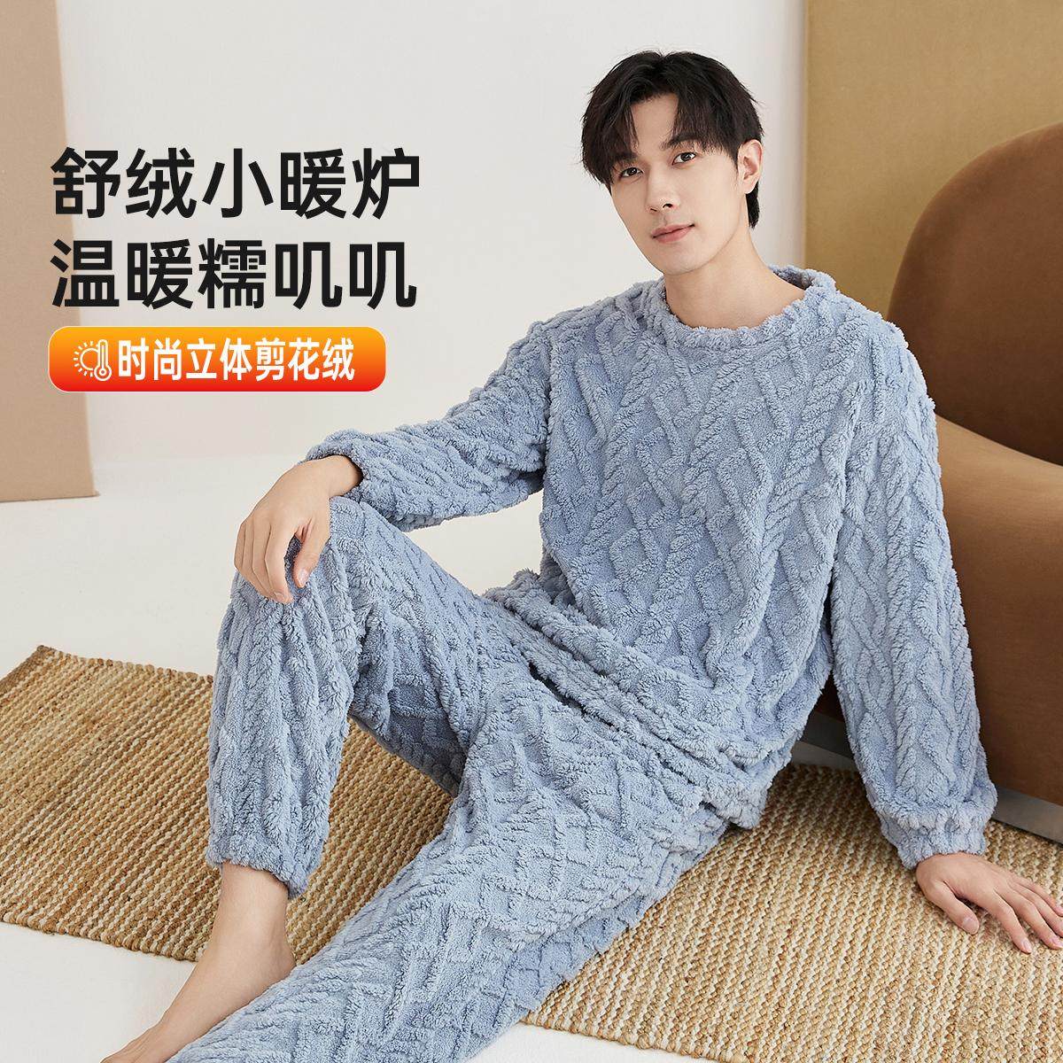 顶瓜瓜男士睡衣男冬季加绒加厚珊瑚绒秋冬2025年法兰绒家居服套装