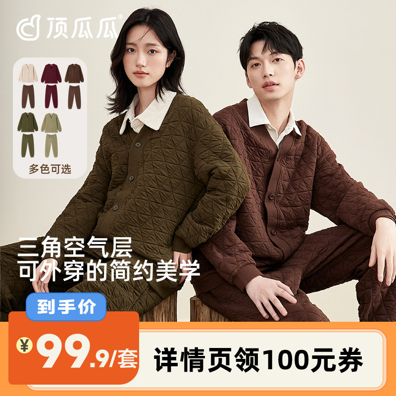 【李佳琦直播间】顶瓜瓜男女款睡衣三角空气层秋冬加厚可外穿冬zb