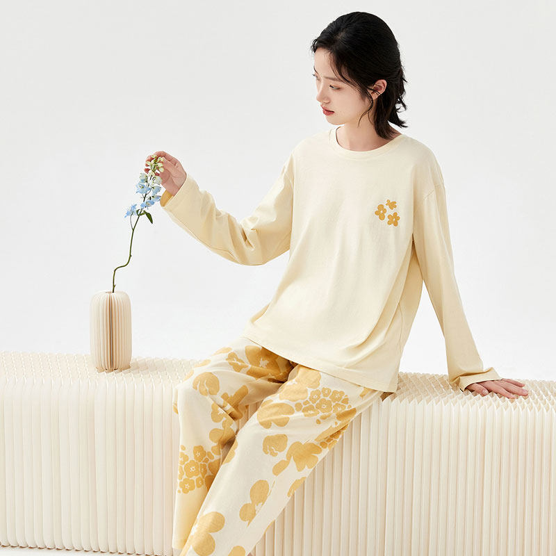 顶瓜瓜睡衣女春夏季长袖长裤纯棉印花圆领休闲薄款青年家居服套装