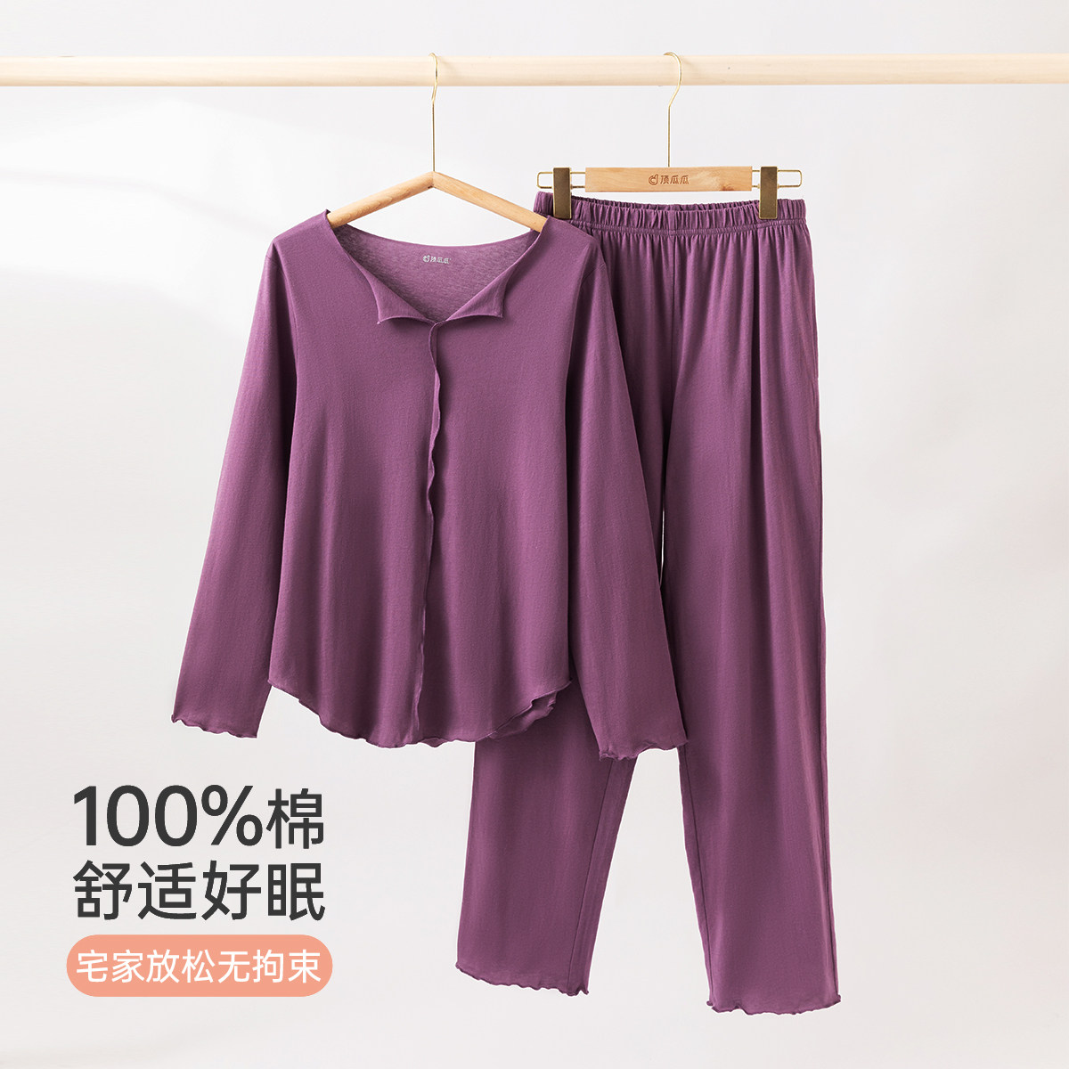 顶瓜瓜A类彩棉女士睡衣套装纯棉长袖长裤开衫防凸点木耳边家居服