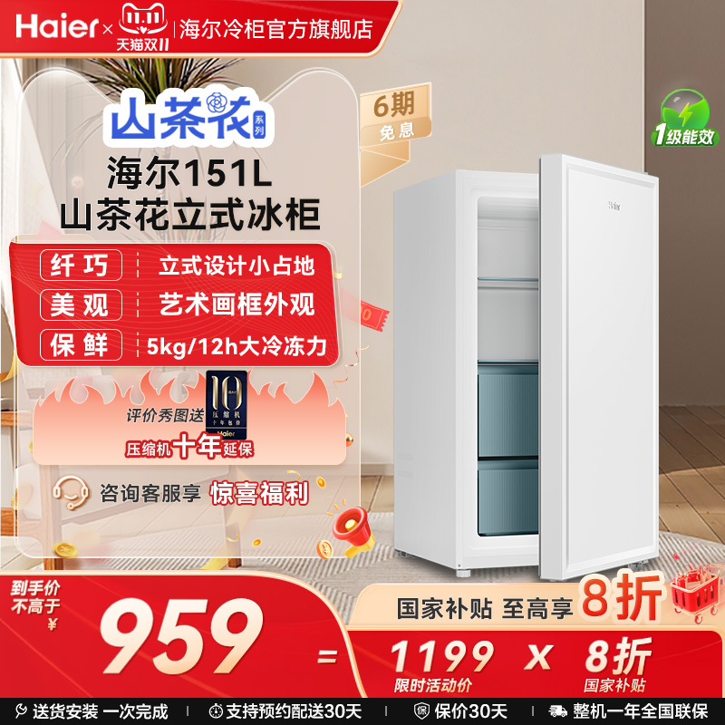 海尔haier151/211升家用母乳辅食冷柜节能冰柜立式冷冻柜抽屉冰箱