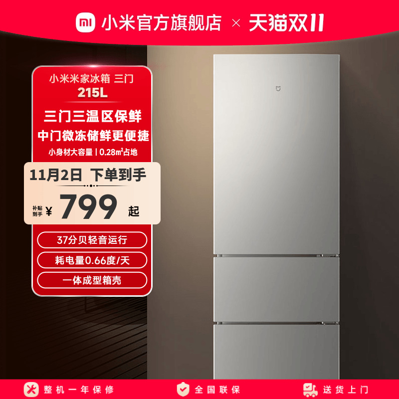 小米米家215L三开门家用节能冷冻冷藏超薄租房宿舍小型小冰箱