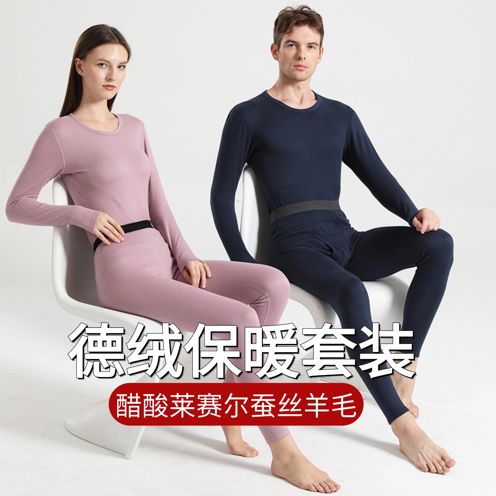 羊绒蚕丝保暖内衣男女套装加厚加绒秋衣秋裤德绒发热打底棉毛衫冬
