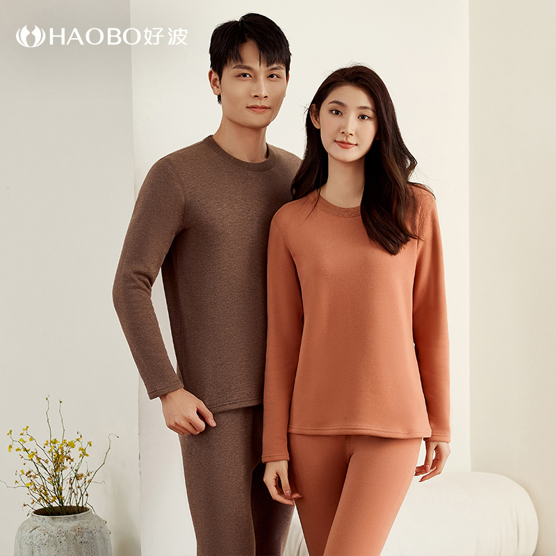 好波加绒加厚保暖内衣套装男女秋衣秋裤套装女妈妈款HNY2301