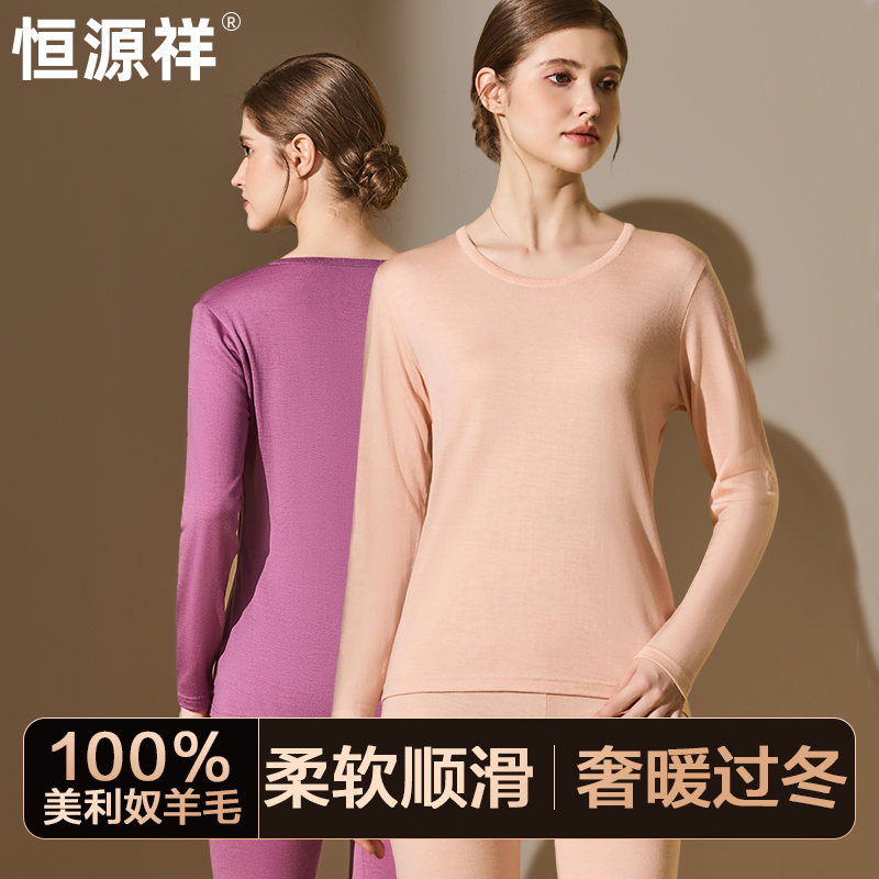 恒源祥100%纯羊毛保暖内衣套装男女秋衣秋裤套装薄款线衣线裤冬季