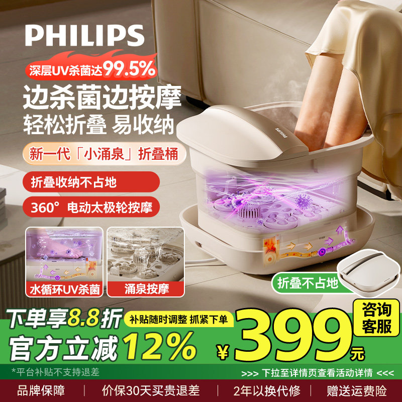 飞利浦泡脚桶加热恒温足浴器家用可折叠电动按摩全自动杀菌洗脚盆