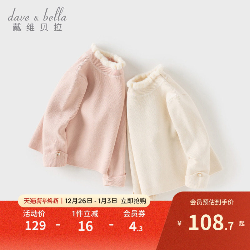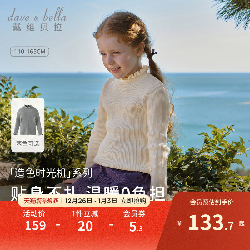 戴维贝拉女童半高领毛衣2025冬季新款中大童洋气针织衫儿童套头衫