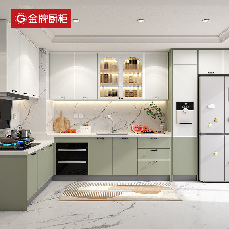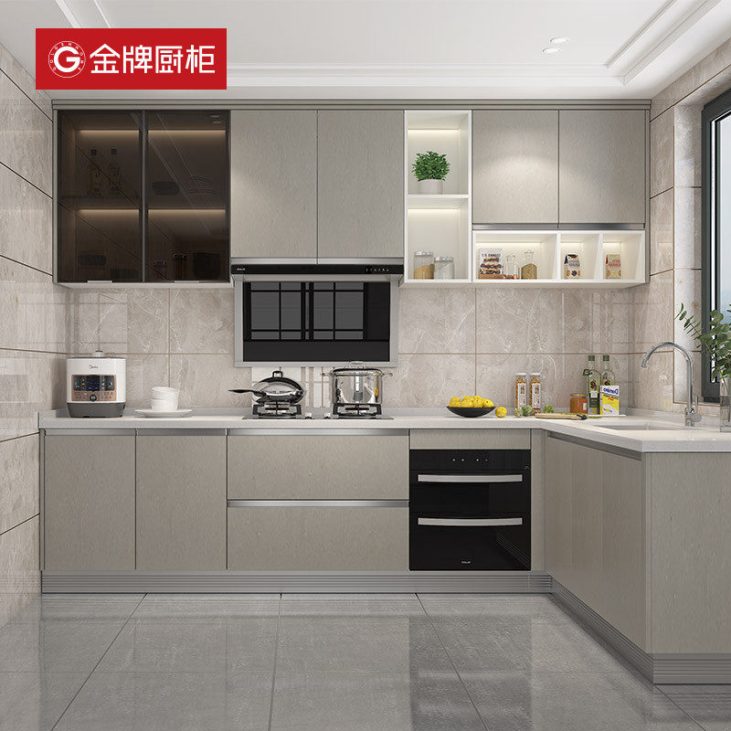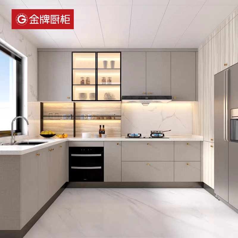 金牌厨柜整体厨房厨柜定制现代家用橱柜一体式石英石台面灶台柜子