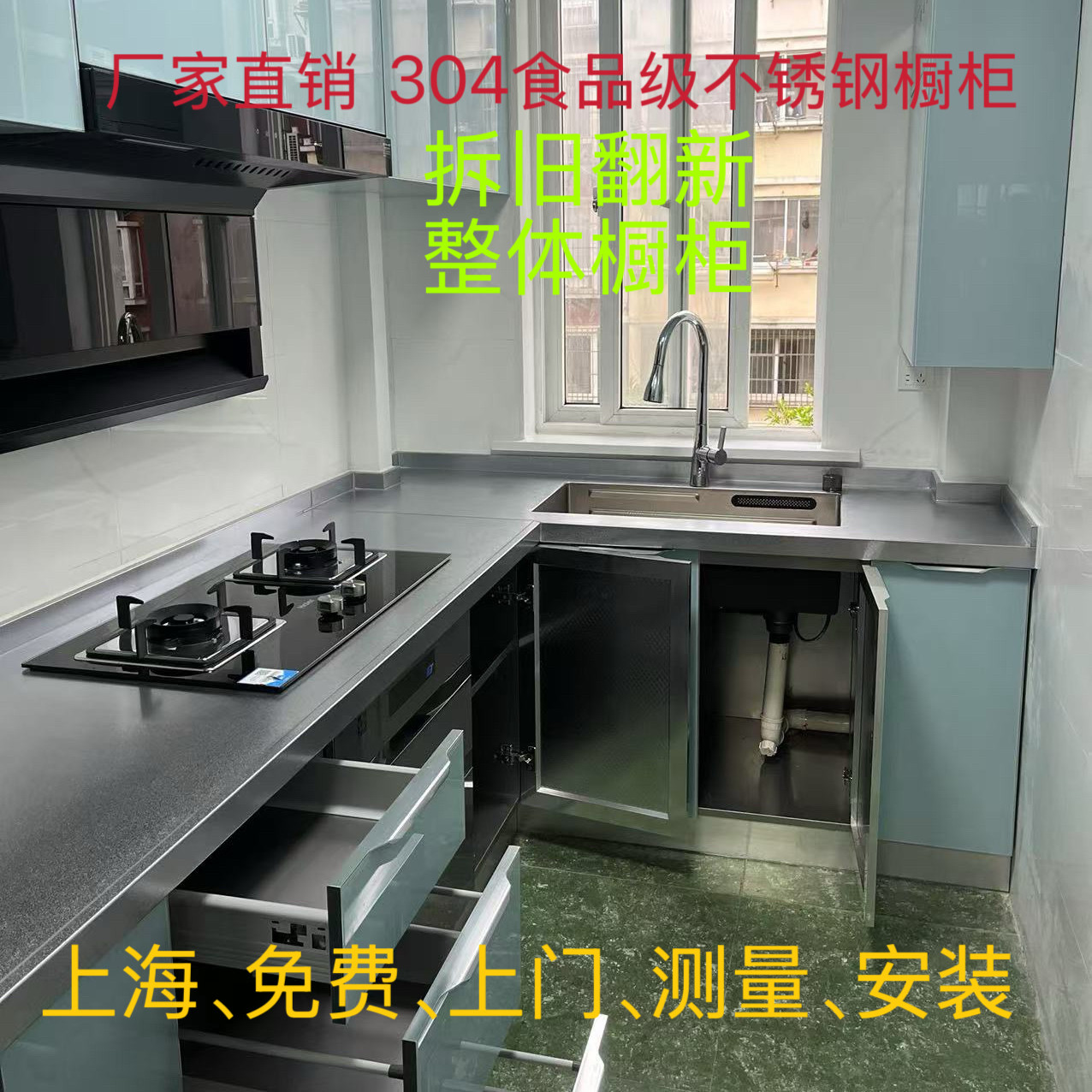 上海304不锈钢整体橱柜定制简约现代家用厨房翻新拆旧加厚灶台面