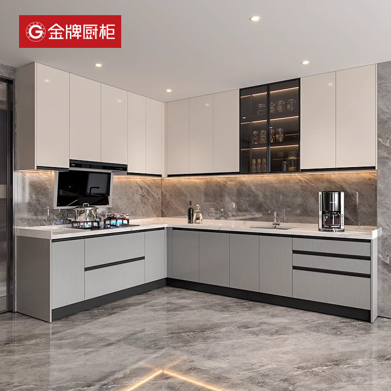 金牌厨柜整体橱柜定制石英石台面整体厨房橱柜组装家用一体灶台柜