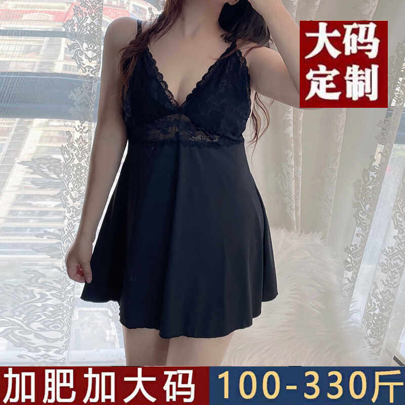 夏季加肥加大码女装胖mm显瘦性感蕾丝连衣裙镂空露背宽松吊带睡裙