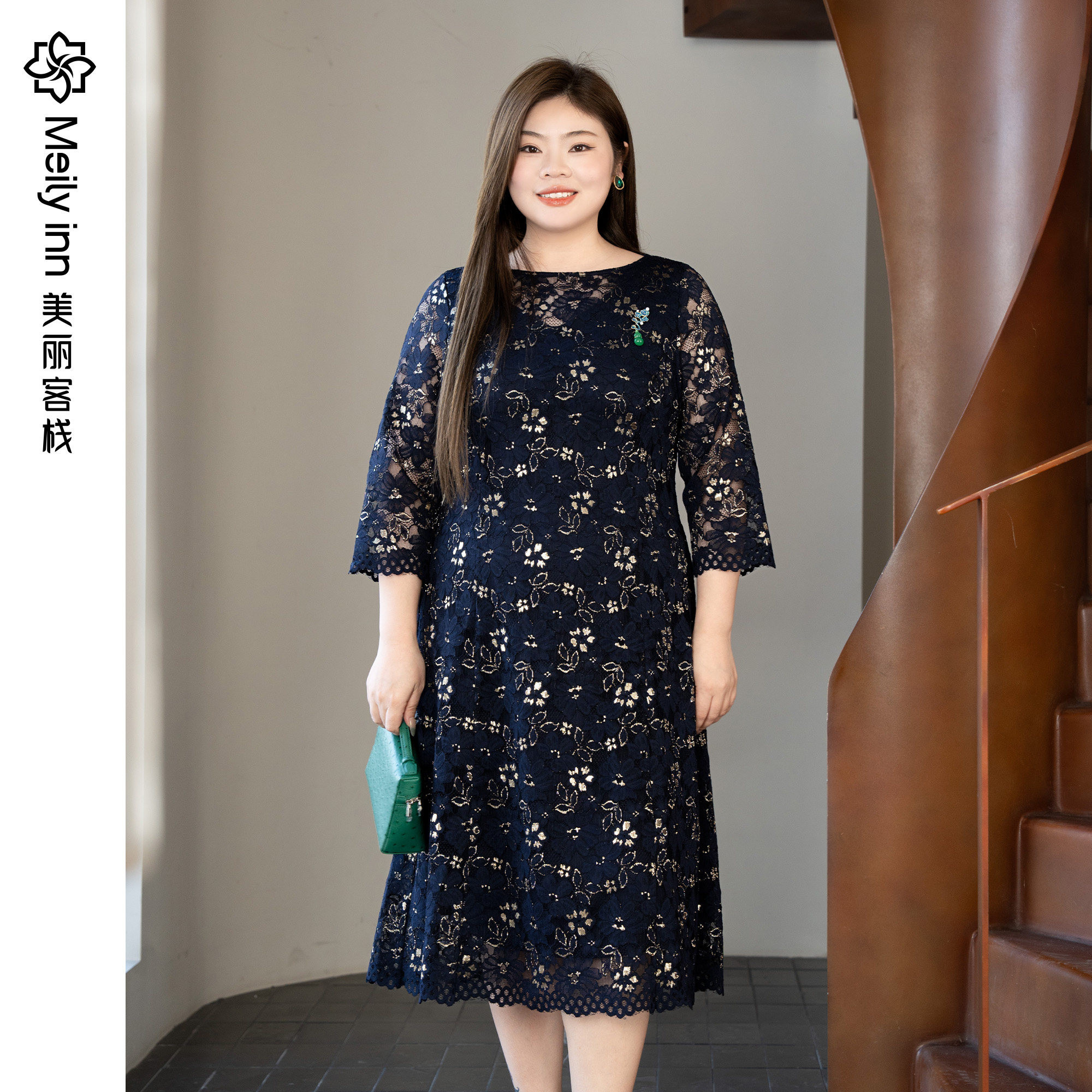 美丽客栈原创高端超大码女装胖mm200斤加肥加大蕾丝高级连衣裙春