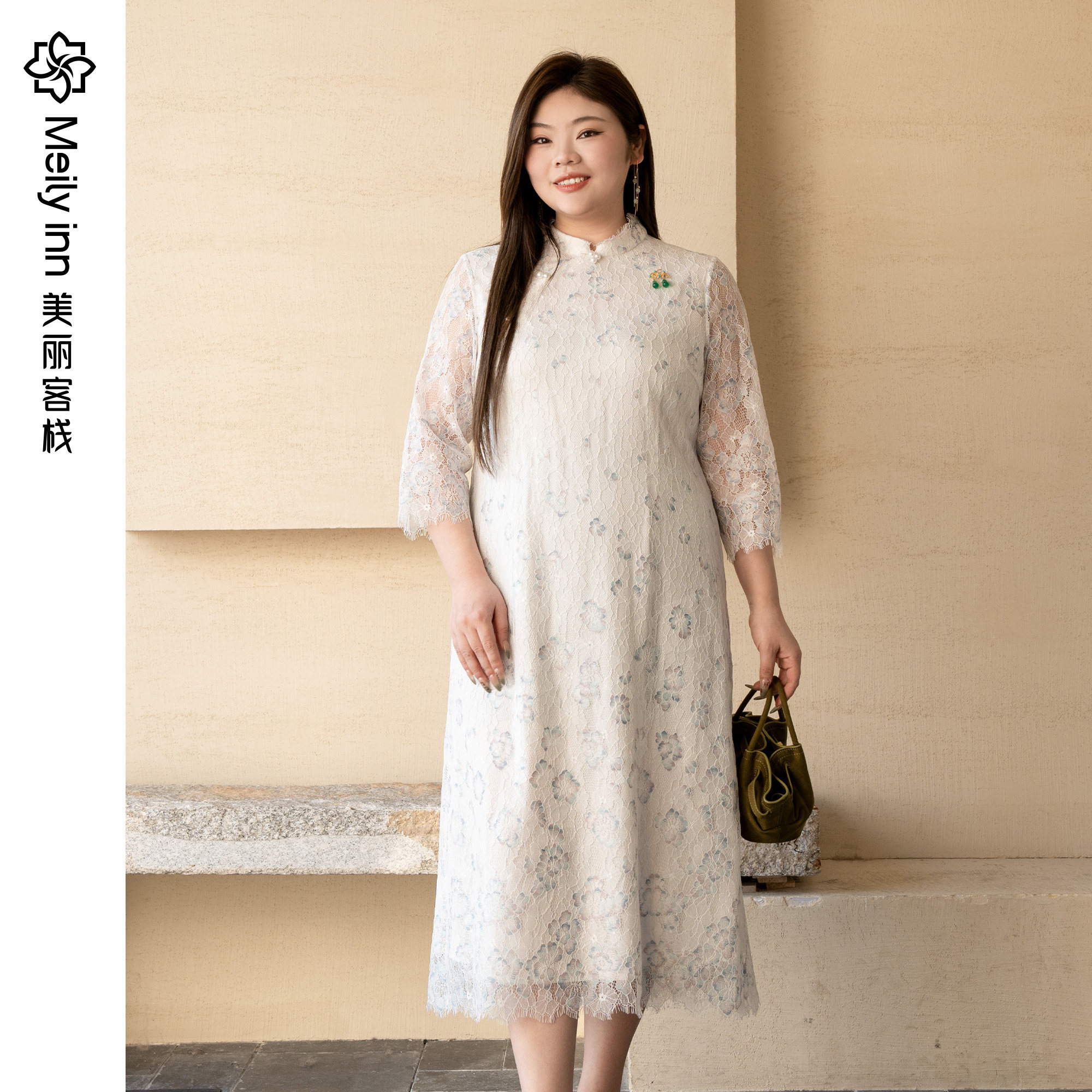 特大码女装蕾丝连衣裙300斤200胖mm复古改良旗袍加肥加大夏季裙子