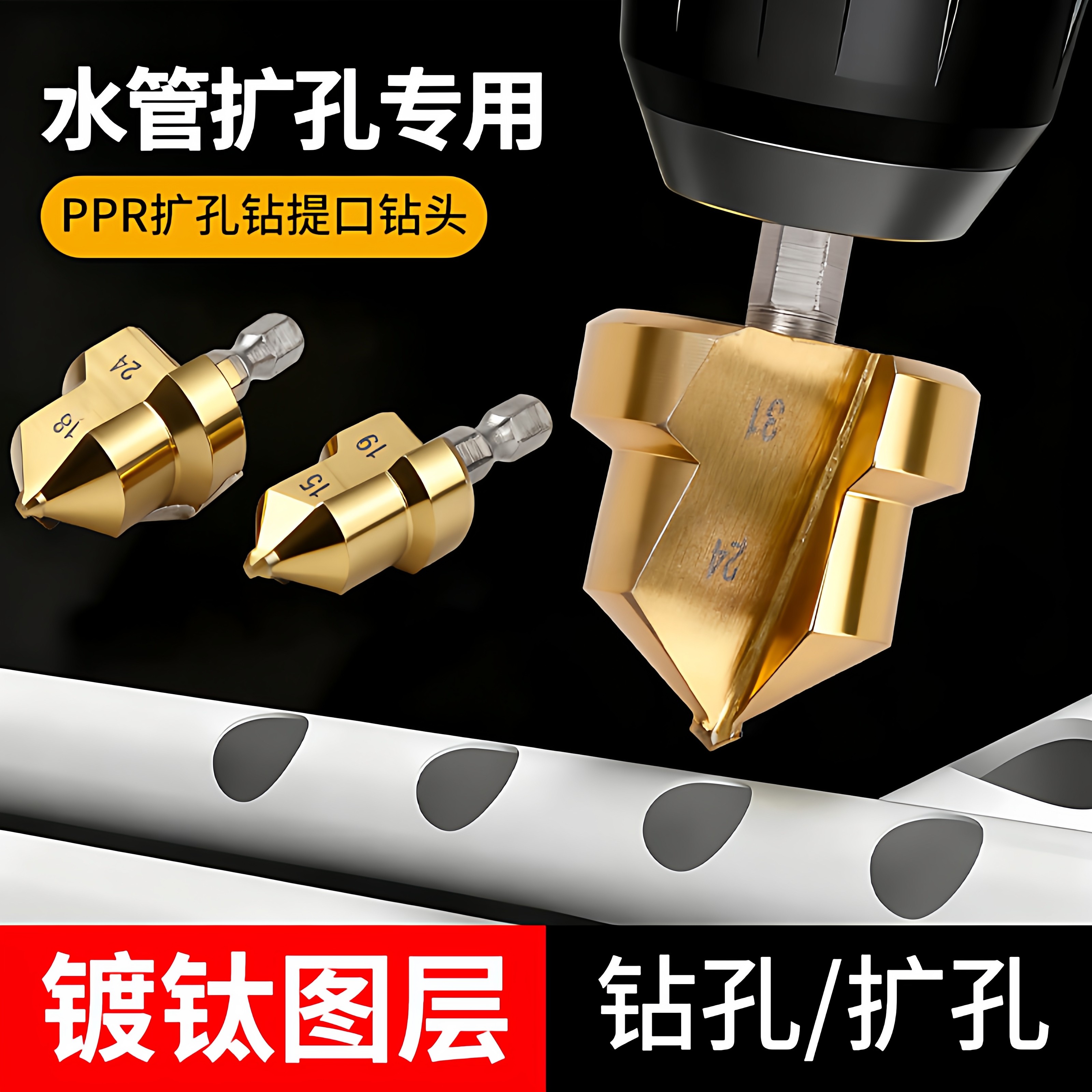 PPR/TPR升级款水管修复钻提口括口钻头倒角器20/25/32热熔器配件