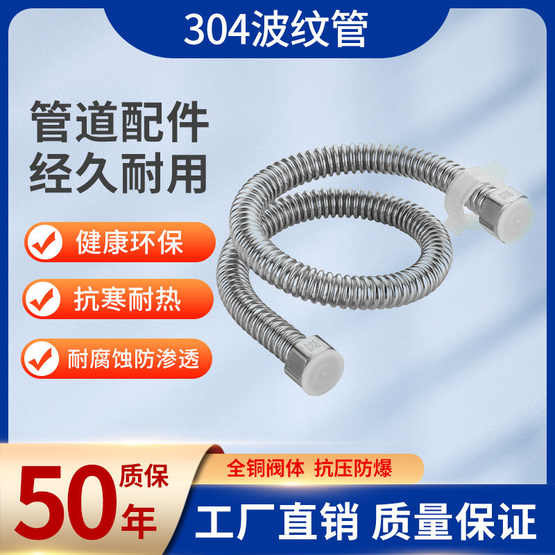304不锈钢波纹管热水器冷热家用金属进水软管4分马桶上水防爆水管
