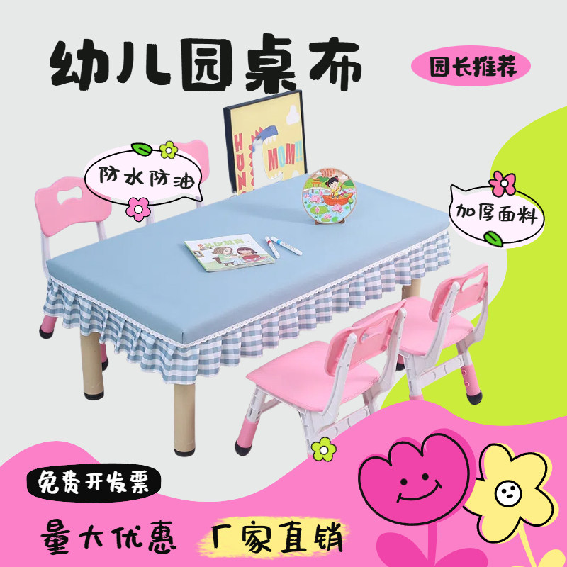 幼儿园专用桌布长方形桌套罩木桌塑料桌子桌布美工区防水防油免洗