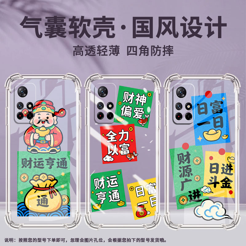 适用小米PocoM6Plus手机壳XiaomiPocoM5S高级感PocoM3Pro/M4Pro财神到福气囊壳小米PocoM7Pro时尚保护套