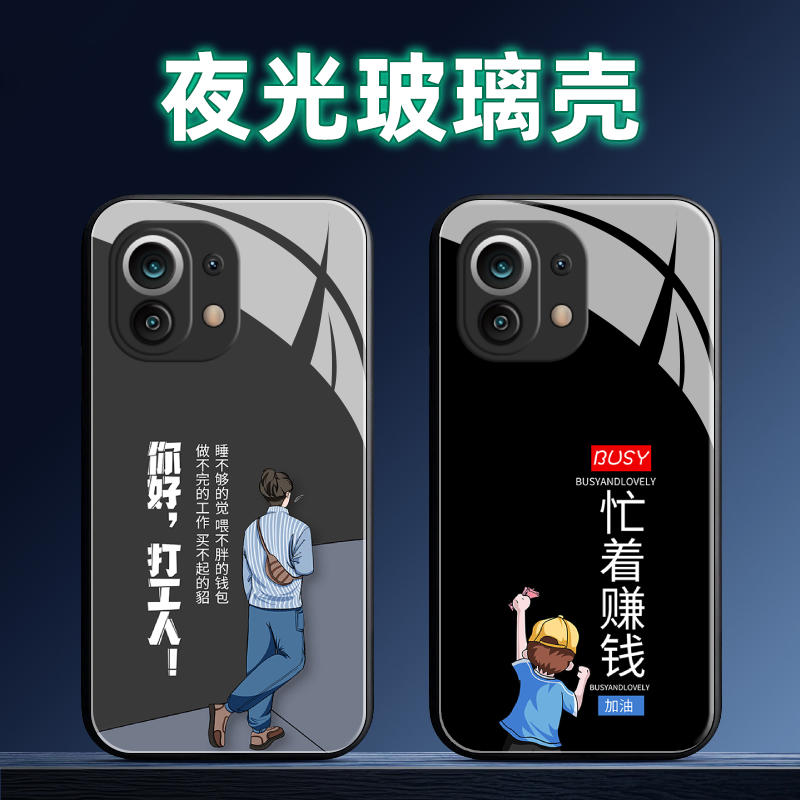 适用小米系列11Ultra夜光玻璃手机壳10Pro至尊CC9E保护套8SE青春6X全包5S防摔Plus软Note3薄2/Play打工多定制