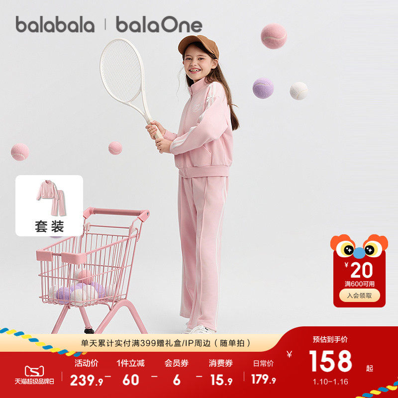 巴拉巴拉童装女童套装儿童长袖两件套2025新款秋冬装运动休闲甜美