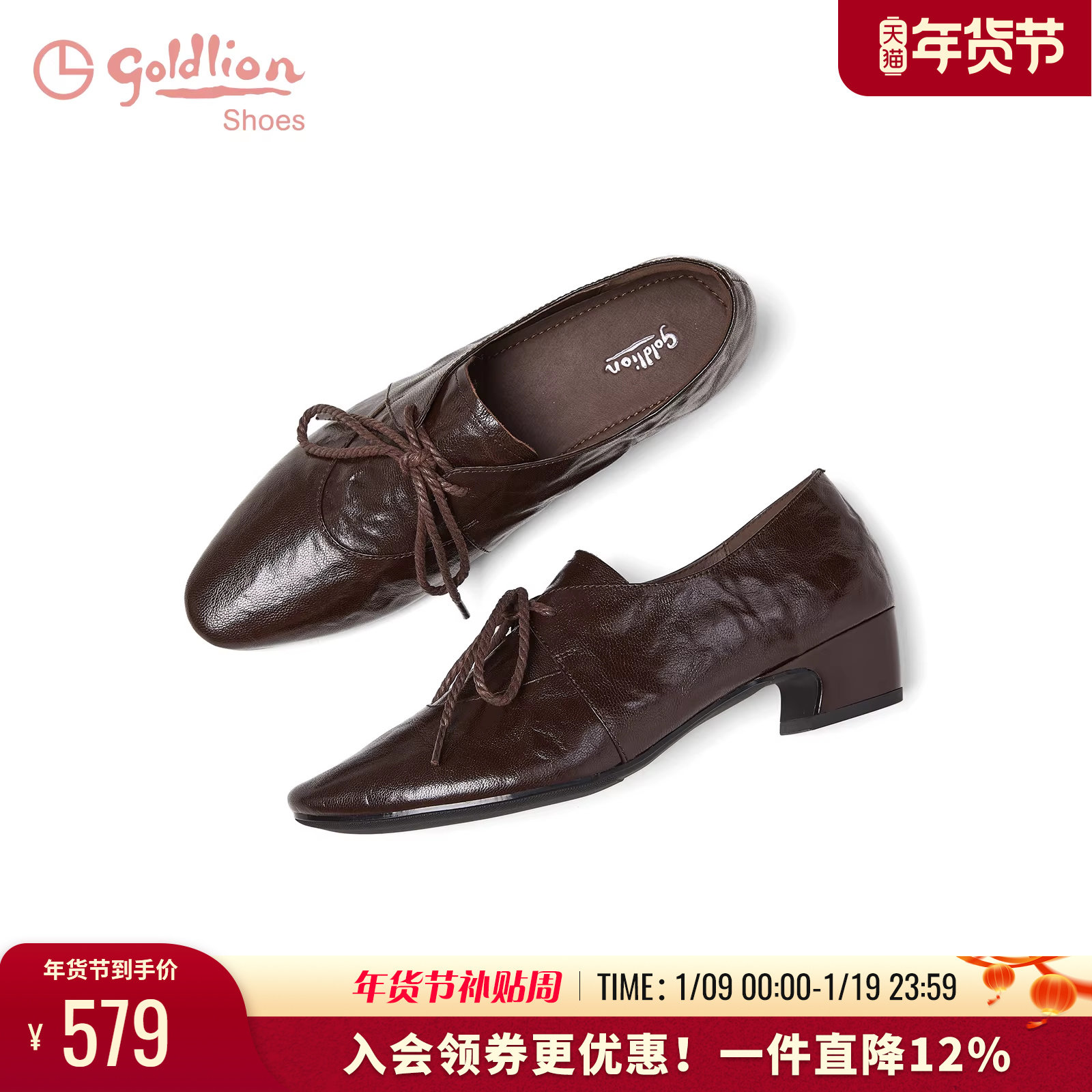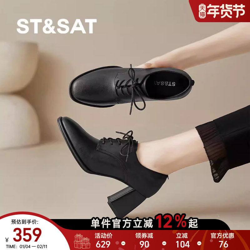 星期六女鞋粗跟2025超火单鞋妈妈鞋单鞋方头系带通勤鞋中跟不累脚