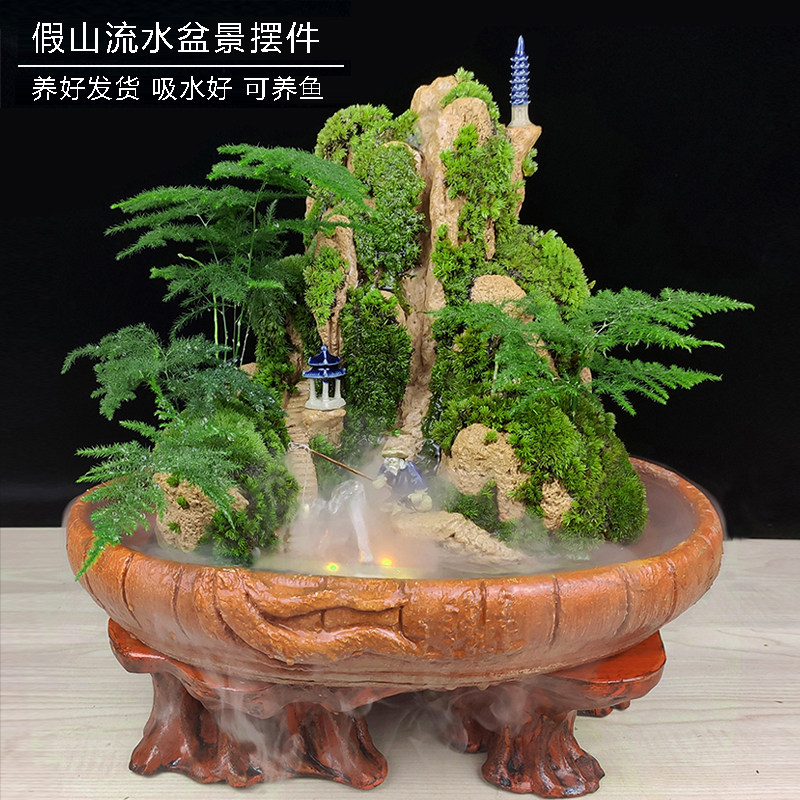 大型吸水石上水石摆件假山盆景仿真植物多肉盆栽桌面造景家居饰品