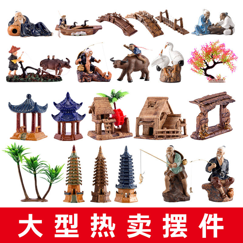 假山摆件配件小桥装饰鱼缸造景盆景摆件吸水石上水石摆件陶瓷园艺