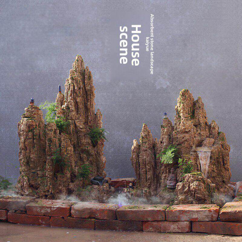 吸水石盆景造景小摆件上水石大假山流水微景观鱼缸水景陶瓷装饰品