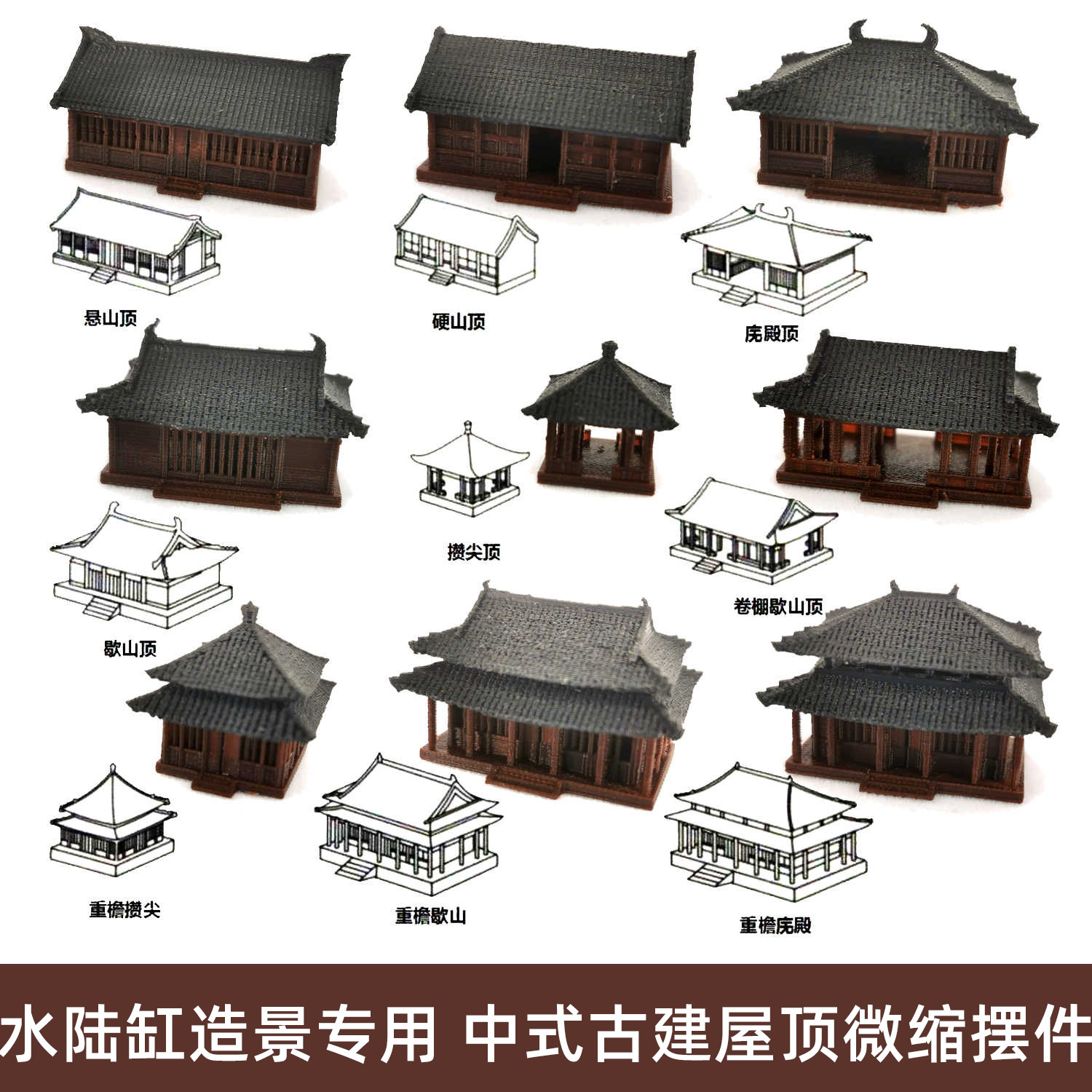 假山吸水石鱼缸水陆缸山水盆景3d打印沉水古建筑模型造景摆件躲避