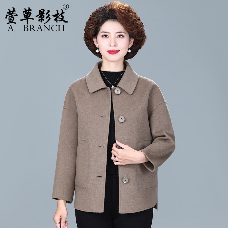 品牌妈妈装双面绒外套中老年女装羊毛大衣短款大码毛呢秋冬款呢子